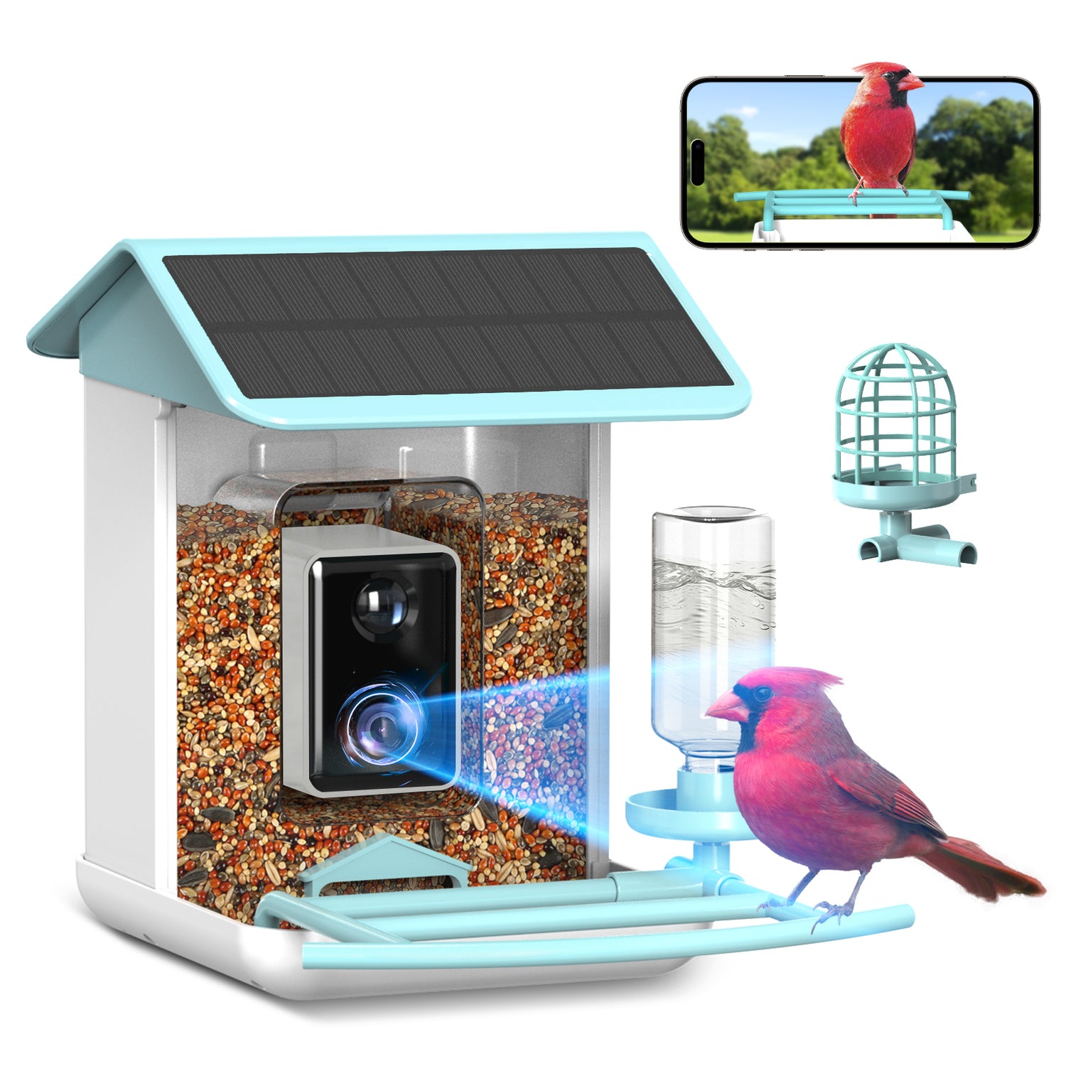 Smart Bird Feeder with Camera, Free AI Forever for 11,000+ Bird Species, 64G TF Card & 1080P HD, Solar-Powered Wireless Outdoor Bird Feeder, App Alerts & Two-Way Audio for Garden Bird Watching